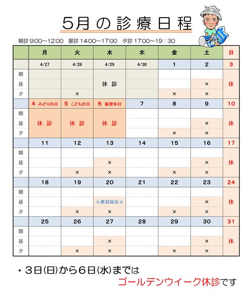 5月の診療日程のお知らせです📅